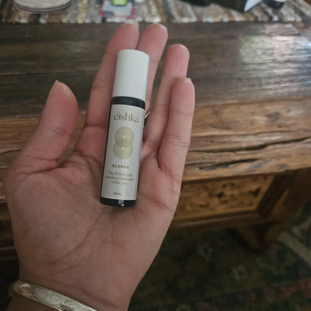 “Elshka was manifested when I was in a rut, stuck in my masculine energy. I wanted something that would activate and inspire, but would keep me grounded and empowered….without smelling like patchouli. I wear it as my signature scent, and apply to the tops of my thighs and in the crook of my elbow before intimacy, and to assist with surrendering to receiving abundance.“