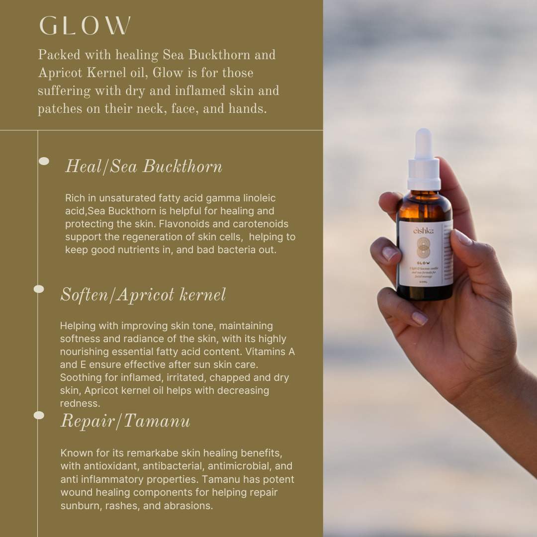 Glow is beautiful for my skin and its never felt so soft and nourished. Glow has also helped my chapped lips.